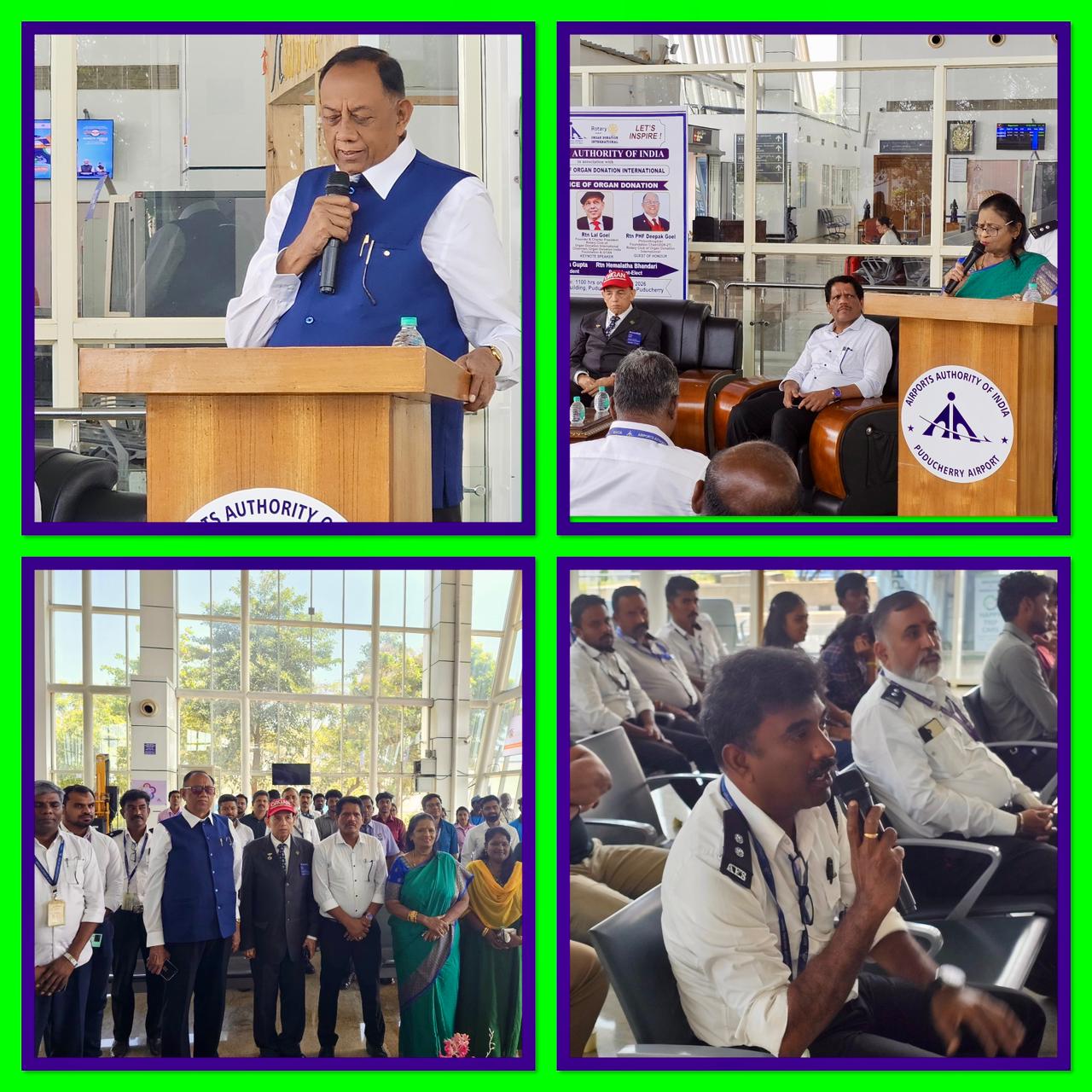 Addressing an organ donation awareness programme, the first of its kind in the Airport Terminal Building, Puducherry, Rotarian Lal Goel highlighted how airport authorities serve as silent yet indispensable partners in the organ donation ecosystem. He explained that swift coordination, priority clearances, and seamless air connectivity enable the rapid intercity transport of donated organs, ensuring they reach recipient hospitals within critical time limits.