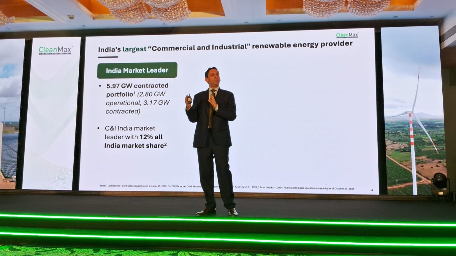 About the Company : CleanMax is India’s largest commercial and industrial (“C&I”) renewable energy provider with 2.80 GW of operational, owned and managed capacity and 3.17 GW of contracted, yet to be executed capacity, as of October 31, 2025, according to the CRISIL Report.