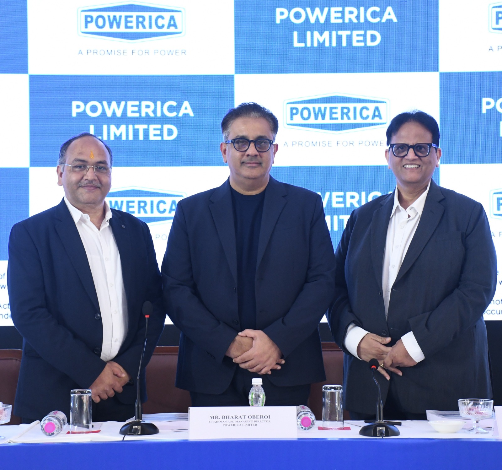 (L–R) Mr. Ritesh Agrawal, Group Chief Financial Officer; Mr. Bharat Oberoi, Chairman and Managing Director; and Mr. Pradeep Gupta, Whole-time Director of Powerica Limited, at the company’s IPO launch in Mumbai.
